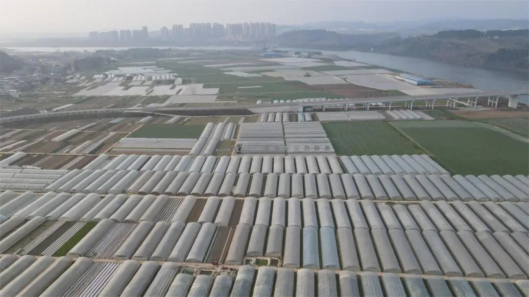△图为遂宁市船山区老池镇书院村移民后扶蔬菜大棚产业项目